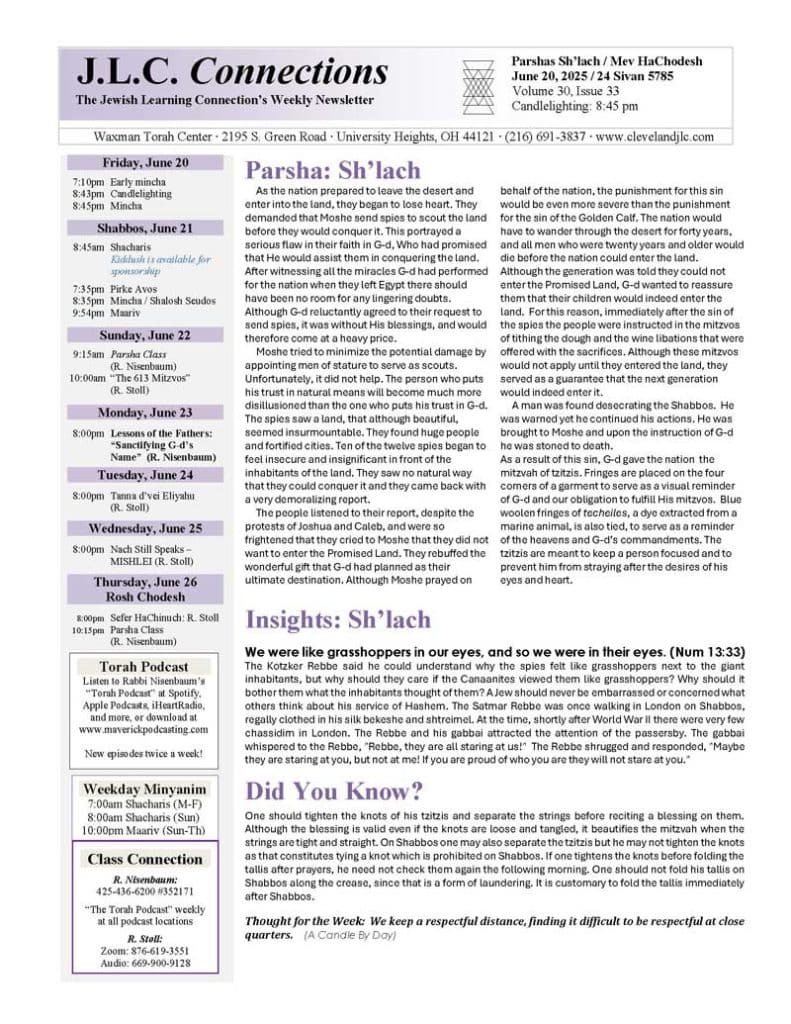 Connections: Parshas Sh’lach 5785